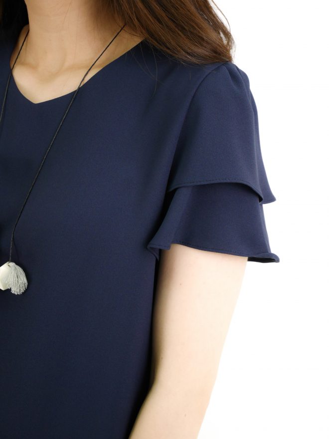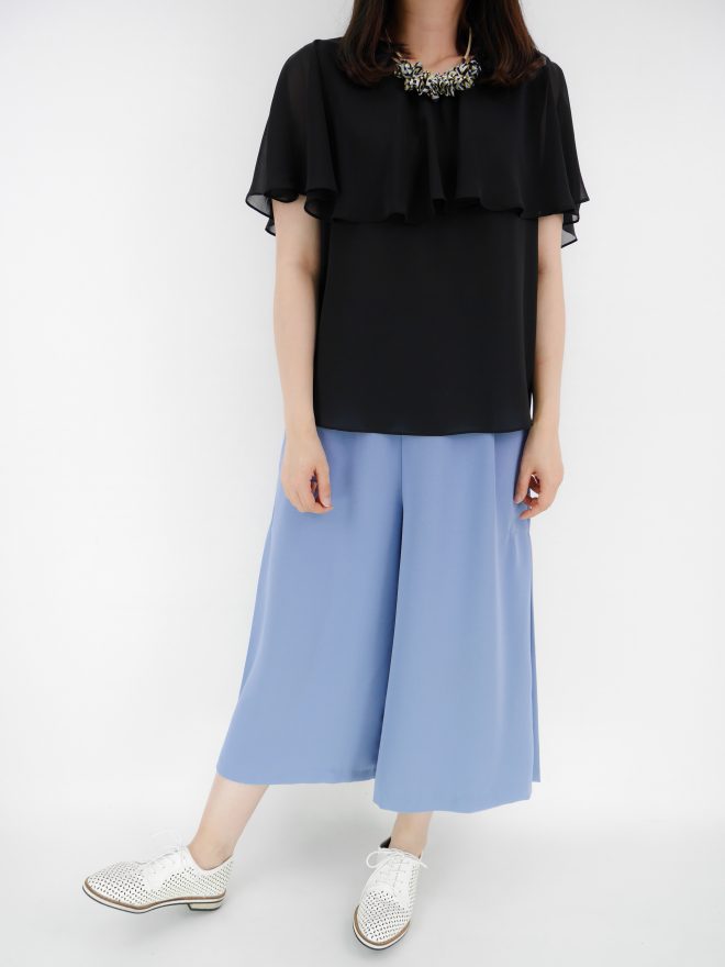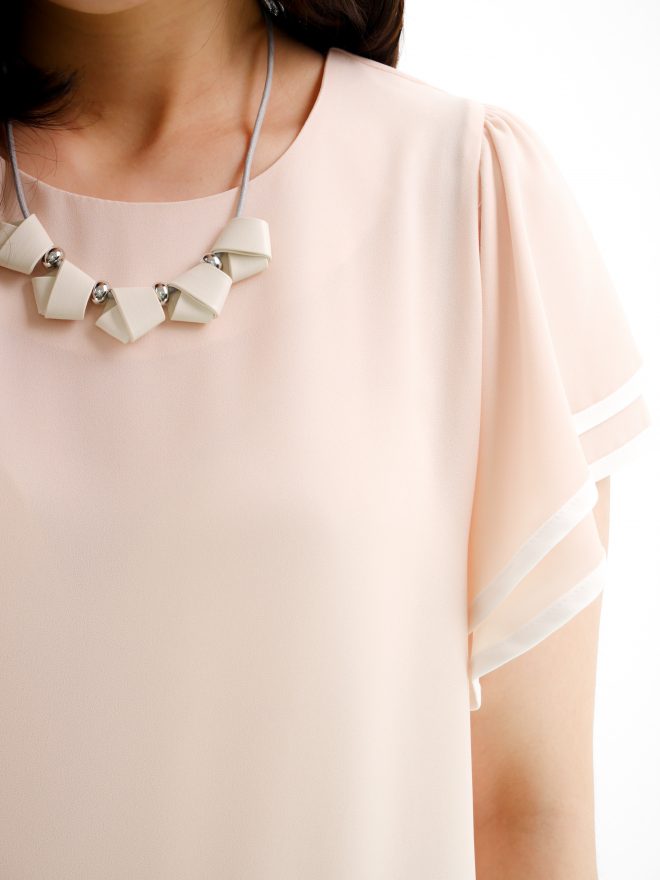 雙層寬袖圍邊雪紡上衣 – 粉藍色