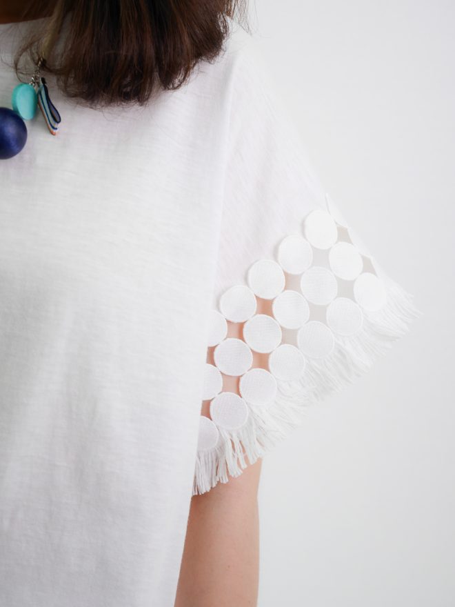 雙層寬袖圍邊雪紡上衣 – 白色